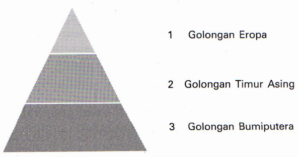 Pada masa penjajahan Belanda, masyarakat Eropa termasuk Belanda menduduki kelas sosial paling tinggi. Di bawah golongan masyarakat Eropa, ditempati oleh golongan timur asing seperti masyarakat dari Tionghoa, India, dan Arab. Masyarakat pribumi menduduki kelas sosial paling bawah.