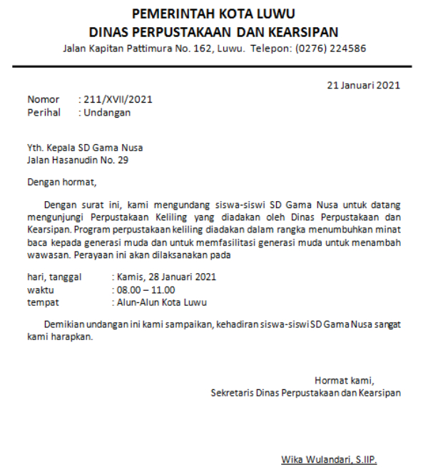 Cermati contoh surat berikut ini.