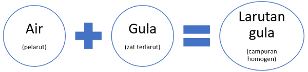 Salah satu contoh campuran homogen adalah larutan. Larutan terdiri dari pelarut (solvent) dan zat terlarut (solute). Pelarut yang banyak digunakan adalah air. Namun, beberapa zat tidak dapat larut dalam air sehingga dikenal juga pelarut selain air, misalnya kloroform dan alkohol.
