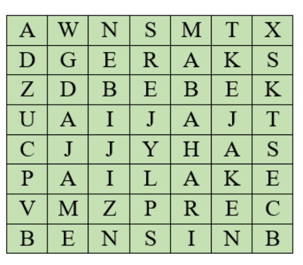 Nama hewan yang berkembang biak dengan cara bertelur yang ada dalam tabel huruf di atas adalah ....