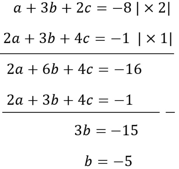 sehingga diperoleh penyelesaian a=1, b=−5, c=3