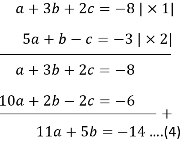 Pilih persamaan (1) dan (2) untuk mengeliminasi variabel c sehingga diperoleh