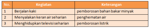 Berdasarkan tabel, kegiatan yang sesuai dengan keterangan ditunjukkan oleh nomor ....