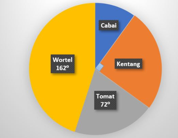 Diagram lingkaran di bawah ini menunjukkan seluruh sayuran milik seorang pedagang.