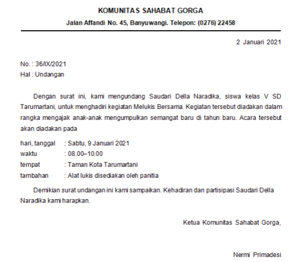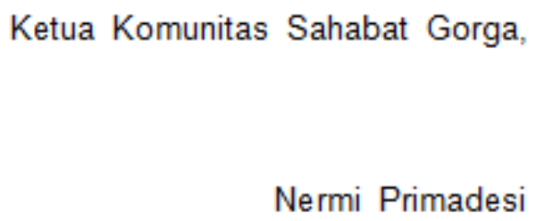 Pada bagian kepala surat di atas tertulis Komunitas Sahabat Gorga. Jadi, bagian yang rumpang pada nomor 2 seharusnya diisi dengan